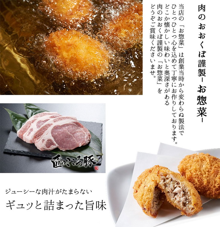 肉のおおくぼの「お惣菜」は創業当時から変わらぬ製法でひとつひとつ心を込めて丁寧にお作りしております。