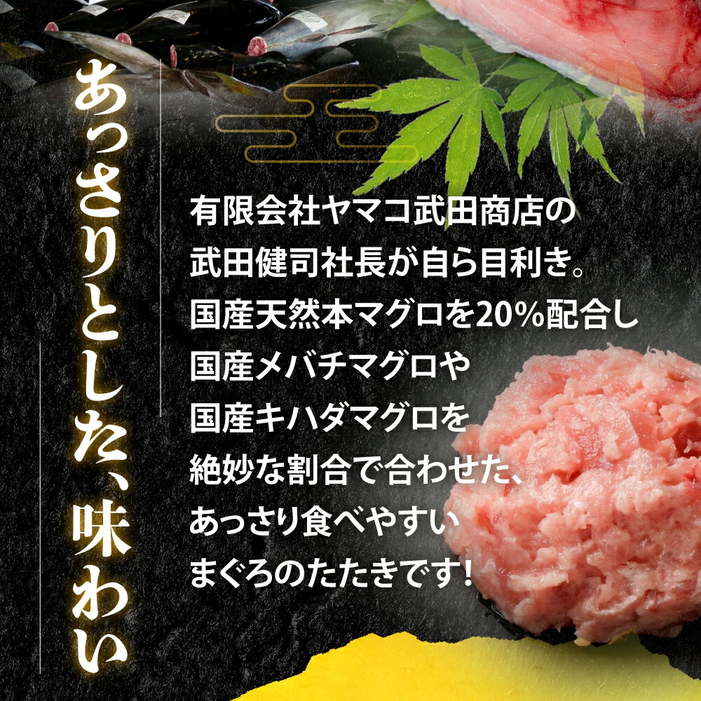 3種の国産天然マグロを絶妙な割合で合わせた、あっさり食べやすいまぐろたたきです。