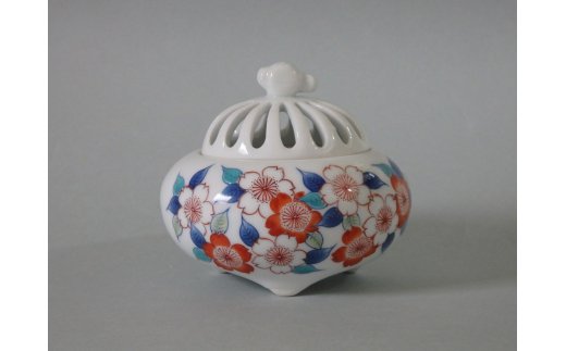 鍋島焼の伝統的な文様の桜を伝統工芸士の冬山が丁寧に絵付けしています。小ぶりでとても可愛らしい香炉です。皆様の生活空間を華やかに演出してくれます。