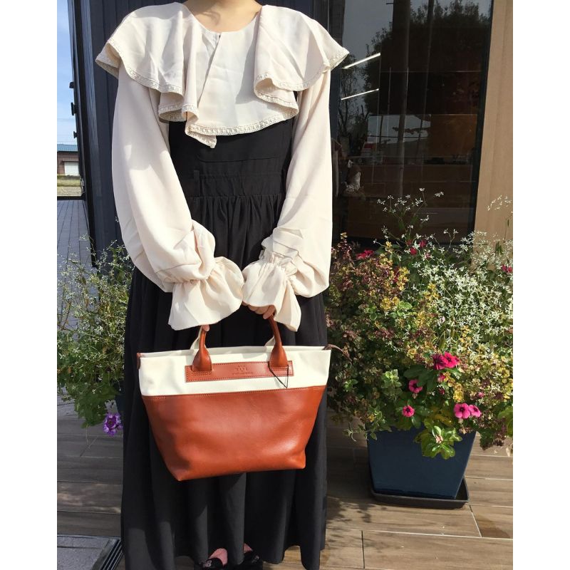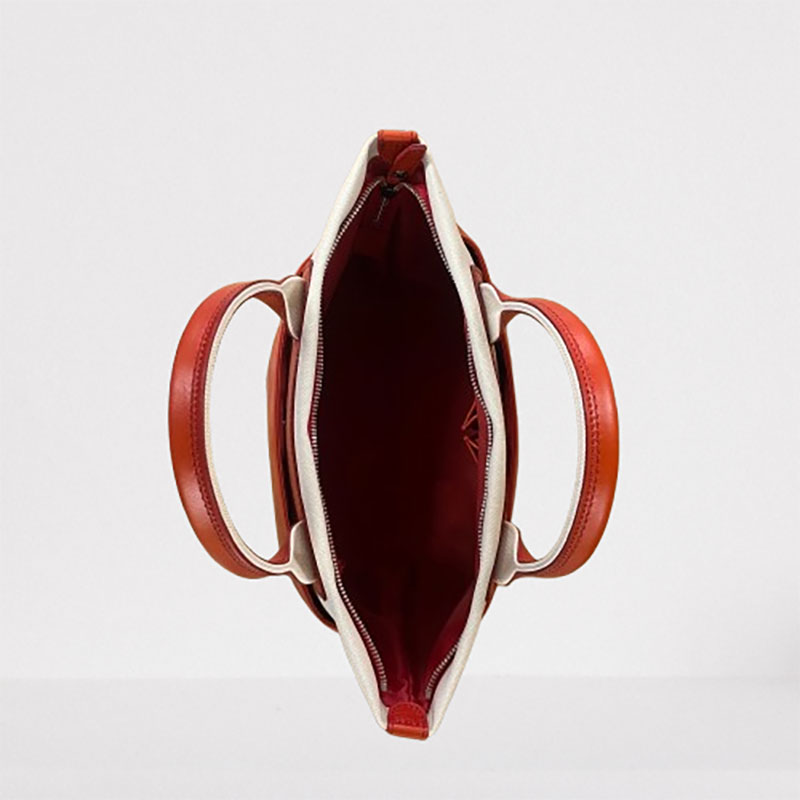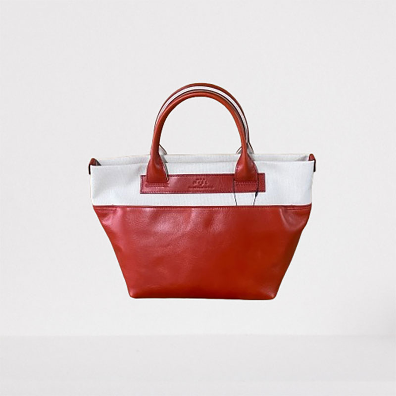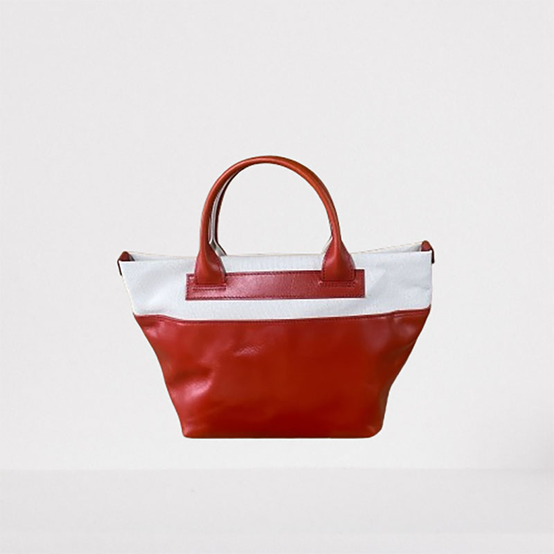 レディース 国産 ミニトートバッグ ナチュラル×レッド