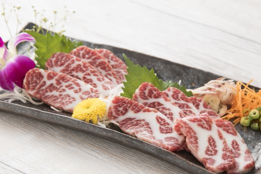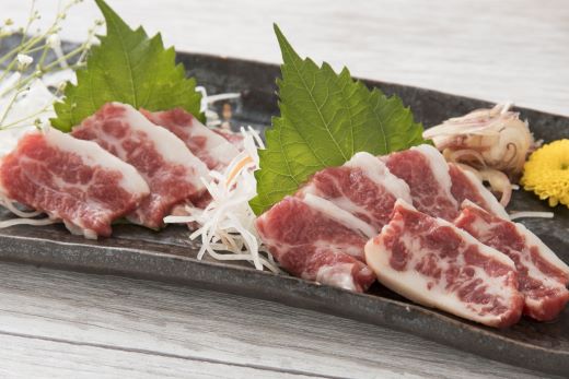 「桜」に例えられる鮮やかな色合いです。霜降り馬刺しの贅沢な食べ比べをお楽しみください。