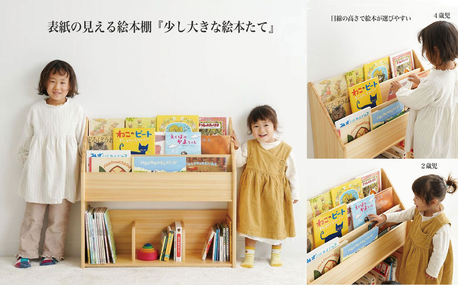 読み聞かせが始まる頃から、自分で選んで、しまう。そんな主体性を育む一台です。