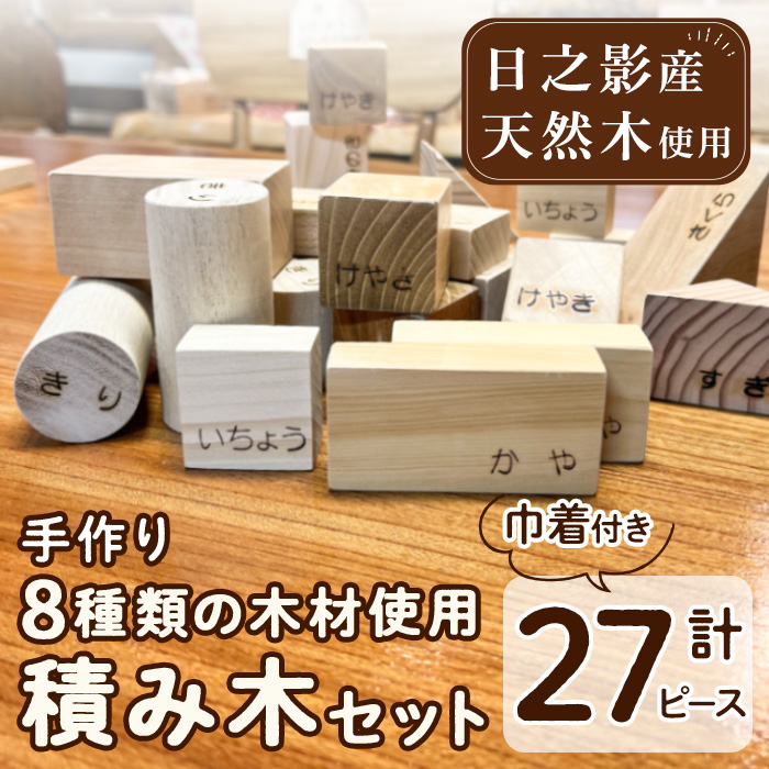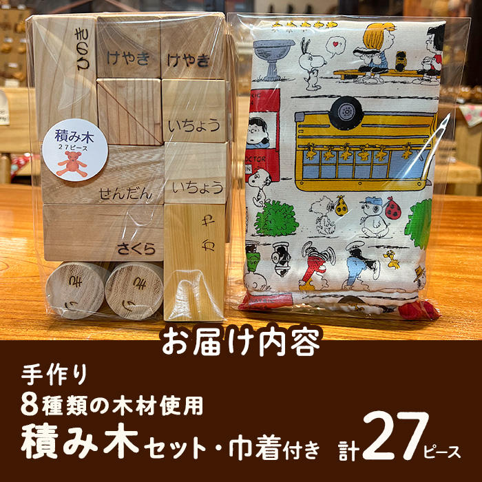 木育 8種の木材使用 積み木:27ピース