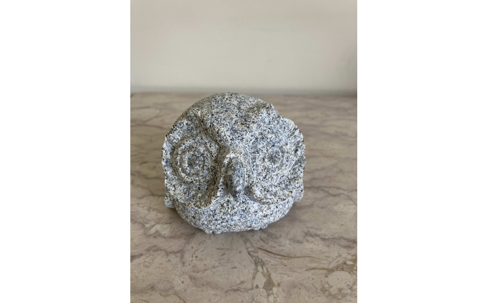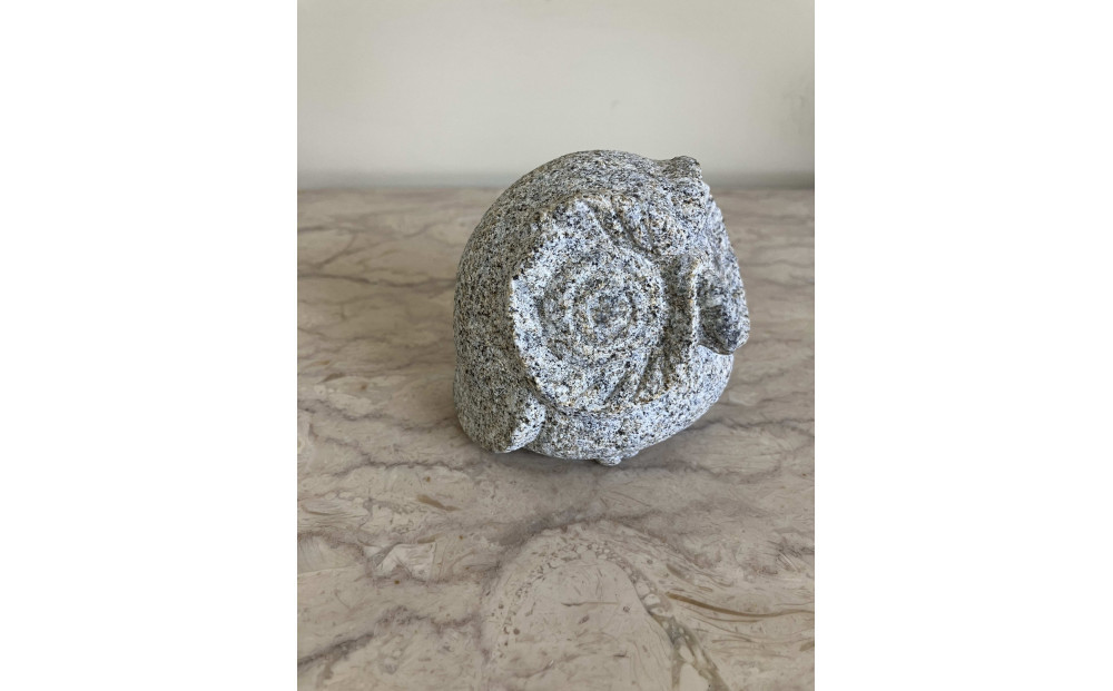 庵治石の中でも希少なさび石を使用したふくろうの置物。さび石とは鉄分を含む茶系色の庵治石の事。彫刻にすると独特の風合いが生まれます。そのさび石を使用したふくろうの置物。手のひらサイズのコンパクトなサイズ感でかわいらしい表情のふくろうは玄関やリビングに最適です。
