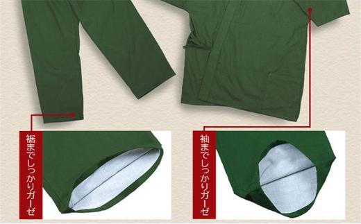 デザインは見た目も心も引き締まる作務衣タイプで、定番カラーの紺色はちょっとしたお散歩にも上品に着て頂け、上質で深みのある緑はワンランク上の価値ある時間を提供してくれます。