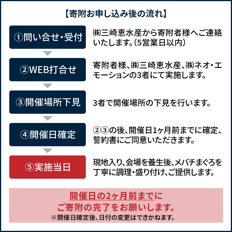寄附者様、(株)三崎恵水産、(株)ネオ・エモーションの3者にて実施します。