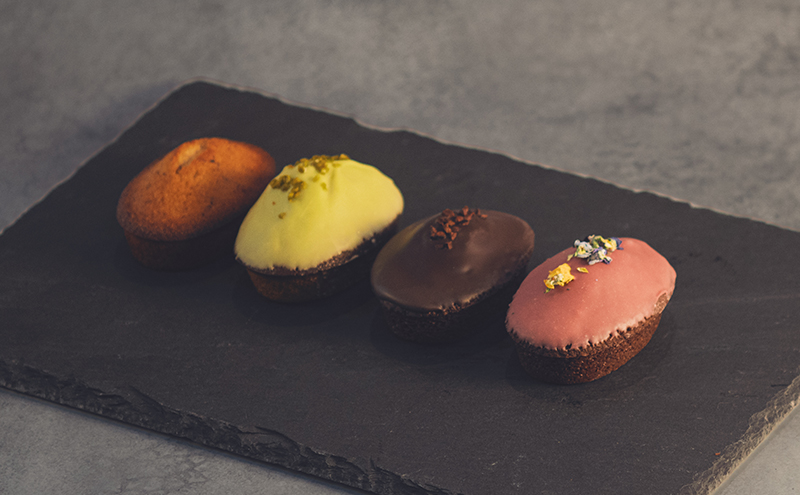 フィナンシェ「ヘーゼルナッツ、チョコレート、ラズベリー、ピスタチオ」