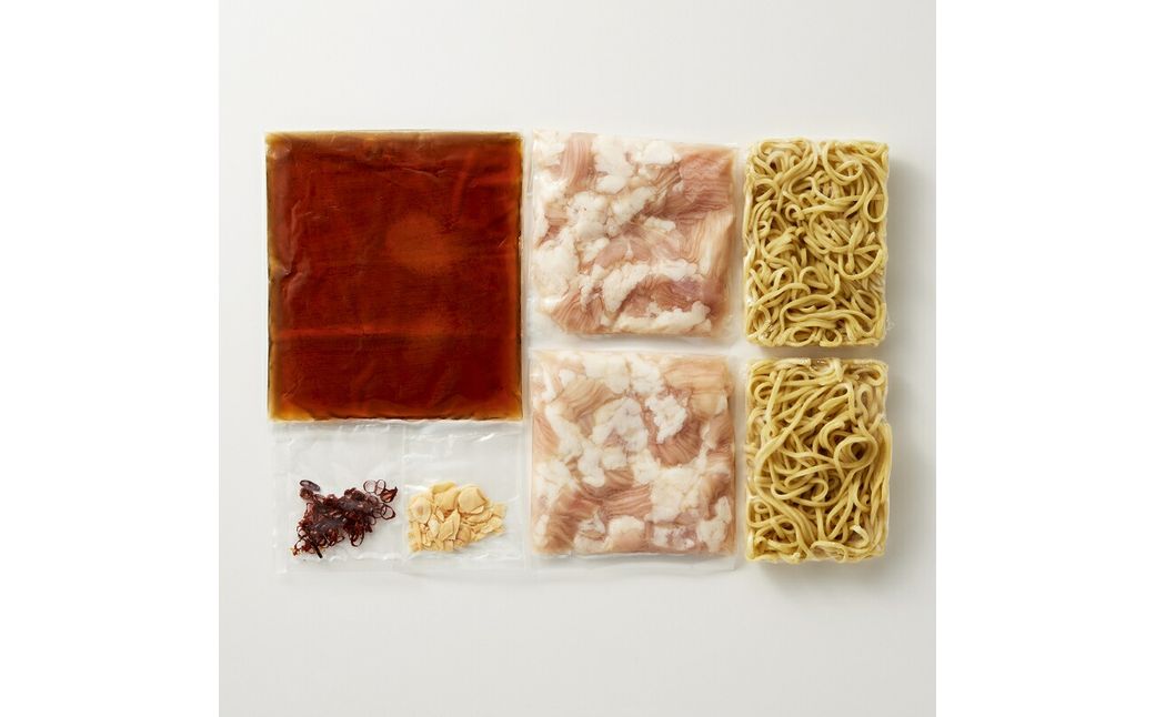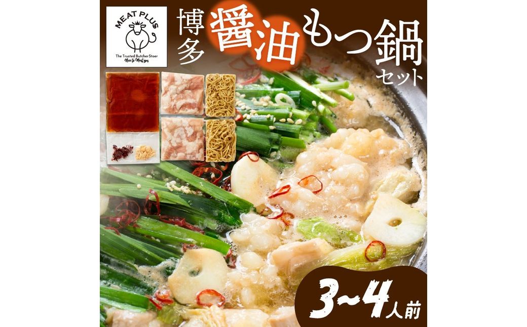 博多醤油もつ鍋 3~4人前セット(牛もつ(200g×2パック)・醤油スープ400g・ちゃんぽん麺2玉・鷹の爪1袋・ニンニク1袋)