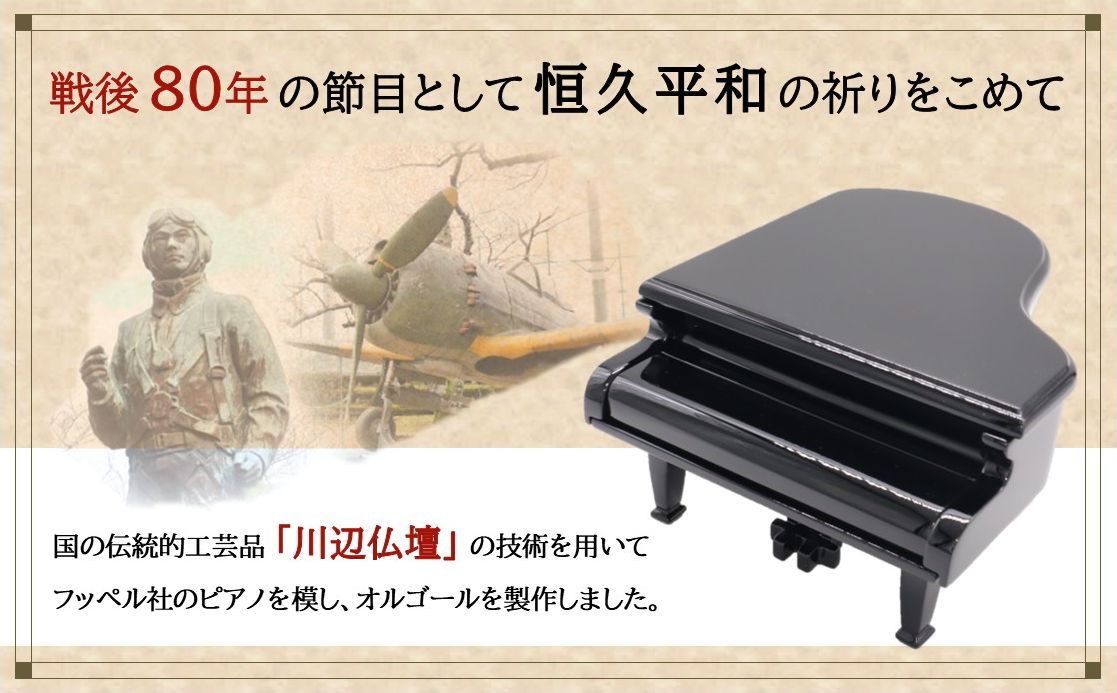 戦後80年の節目として、国の伝統的工芸品「川辺仏壇」の技術を用いてフッペル社のピアノを模し、