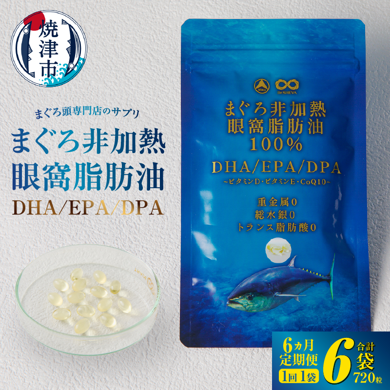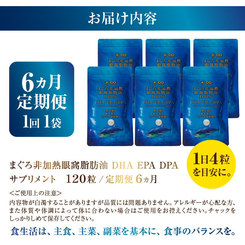 まぐろ非加熱眼窩脂肪油DHA EPAサプリメント:120粒/1袋×6か月