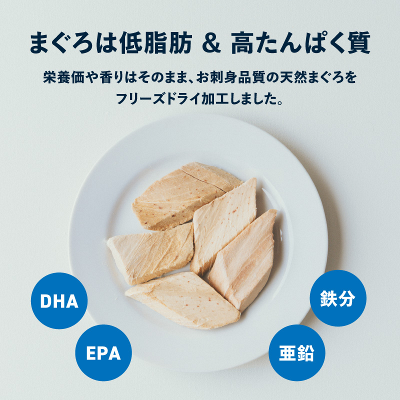 栄養価や香りはそのまま、お刺身品質の天然まぐろをフリーズドライ加工しました。