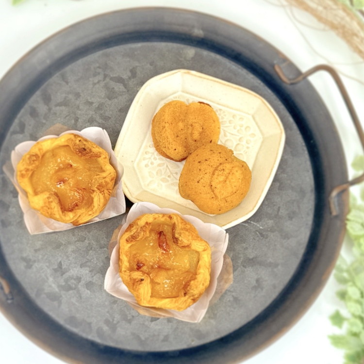 ・フィナンシェ:りんご(長野県産)、バター、卵白、グラニュー糖、薄力粉、アーモンドパウダー、コーンスターチ/ベーキングパウダー(一部に小麦、卵、乳成分、アーモンドを含む)