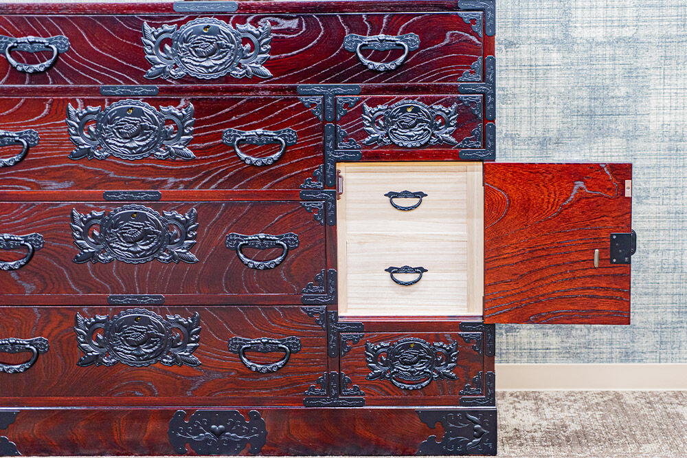 インテリア タンス 収納 家具 和 モダン 高級 和箪笥 小箪笥 伝統 工芸品 仏壇 仏具 神具 飾り棚 欅 漆塗 彫金 金具 装飾 仙台箪笥 船箪笥 舟箪笥 宮城 利府 欅産業 (260323154627)