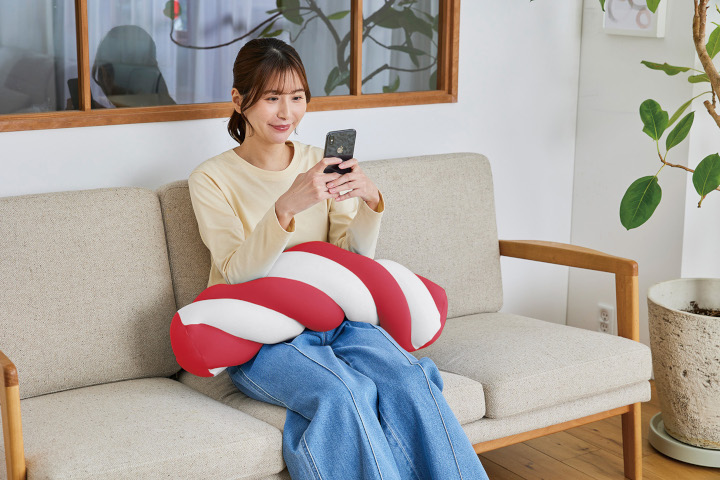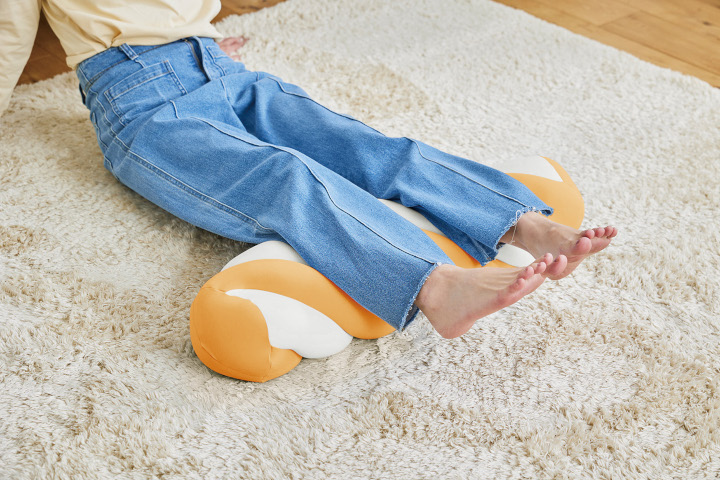 くつろぎ時間の肘置きや、フットピロー、お昼寝まくらなど、インテリアとしても可愛いフォルムで様々な場面で大活躍。