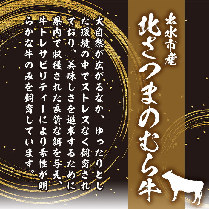 大自然が広がるなか、ゆったりとした環境の中でストレスなく飼育されており、美味しさを追求するために県内で収穫された良質な餌を与え、牛トレサビリティーにより素性が明らかな牛のみを飼育している出水市産北さつまのむら牛 は、ジューシーで赤身と霜降りのバランスがよく、極上の甘みが口いっぱいに広がります。ぜひご賞味ください。