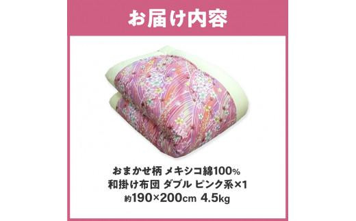 おまかせ柄 メキシコ綿100% 和掛け布団 ダブル ピンク系×1