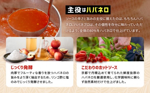 京都の大地で育ったハバネロを、リンゴ酢と塩だけでじっくり発酵。シンプルな素材から引き出した、奥深い旨みとしっかりした辛さが特長のオリジナルソースです。