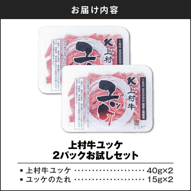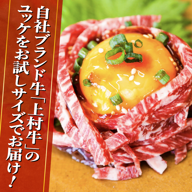 ユッケ 上村牛 牛 生食 生肉 お試しセット セット タレつき お試しサイズ 自社ブランド ブランド牛 あっさり 肉肉しい おつまみ カミチク ふるさと納税 鹿児島 鹿児島市 おすすめ ランキング プレゼント ギフト K002-038