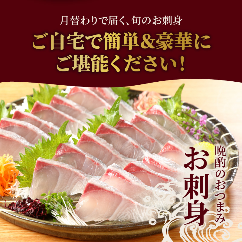 その日向灘沖で育った延岡産の鮮魚を月替わりでお届けする豪華なお造りコースです。