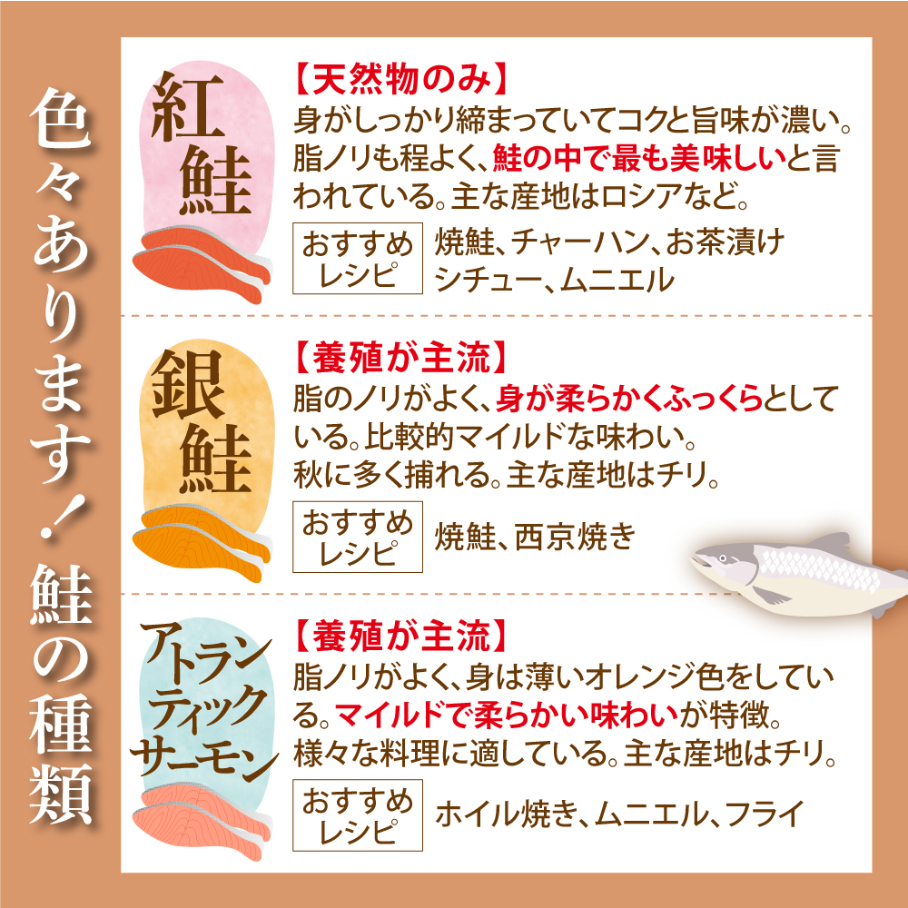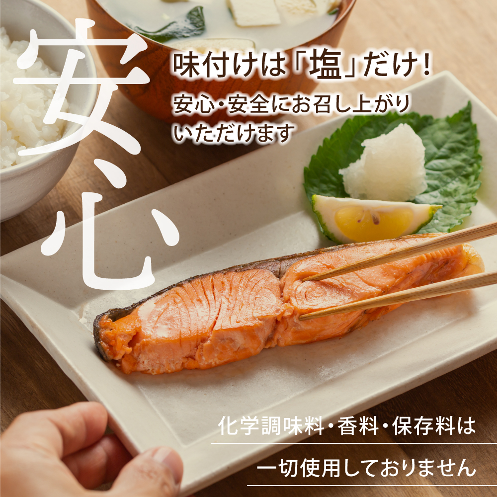 ロシア産の原料は脂ののりが良く、皮が薄いのが特徴で、焼くとパリパリになり皮も美味しく召し上がれる紅鮭です。