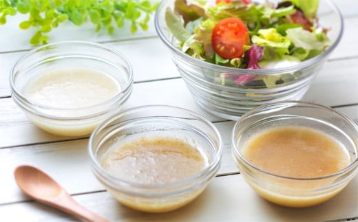 又、このドレッシングは野菜サラダだけでなく、焼いた鶏肉、豚肉、牛肉、白身魚等の掛けるソースとしても大変美味しく頂けますので是非お試し下さい。