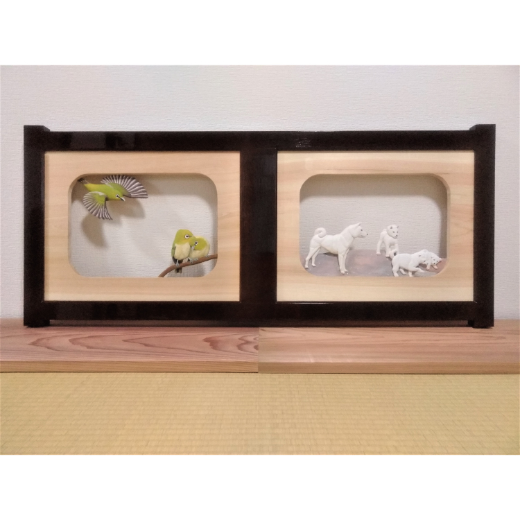 欄間の代替の壁掛けに。蝶番を付けて屏風に。台座を付けて衝立に。など、使い方も色々。