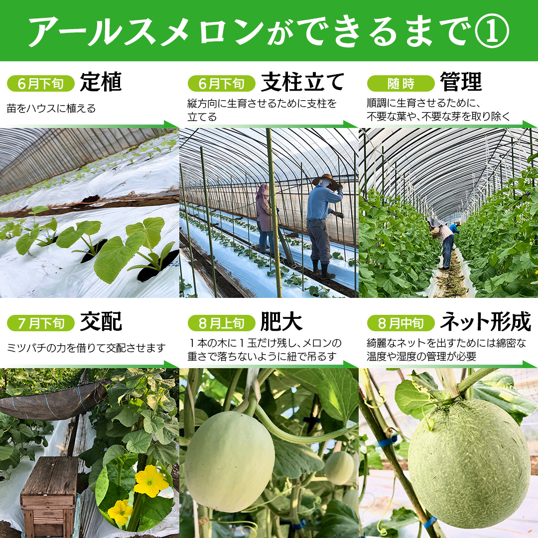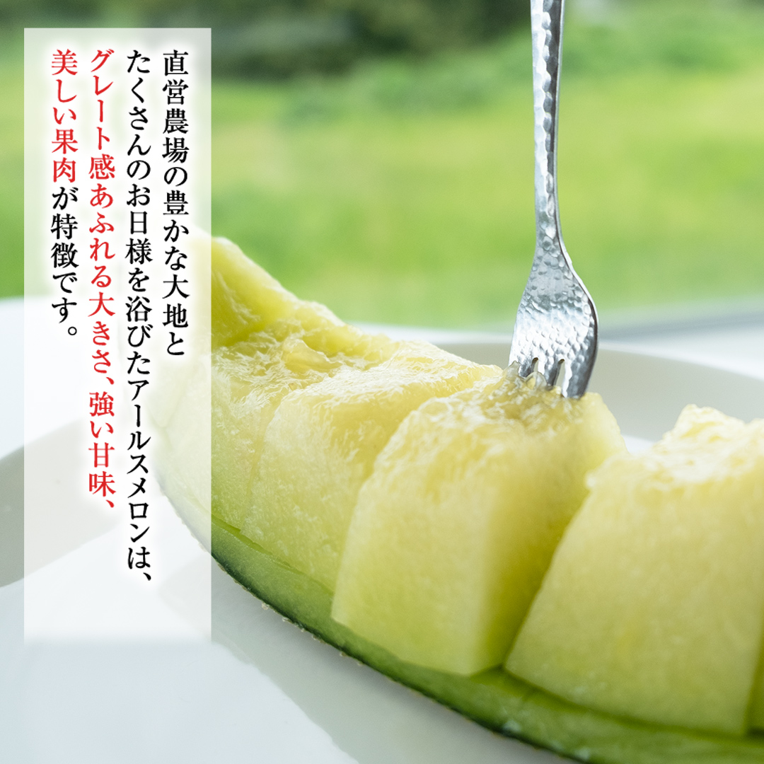 季節限定、市場に一切出荷しない甘さ満点の完熟アールスメロン。貴重な特大サイズです!1本の苗から1玉しか収穫しない贅沢な栽培法で、直営農場の豊かな大地といっぱいのお日様を浴びたアールスメロンは、グレート感あふれる大きさ、強い甘味、美しい果肉が特徴です。この道40年のメロン職人たちが手間暇を惜しまず、愛情を込めて実らせた逸品です。リピーター多数の感動の味を是非ご賞味ください。