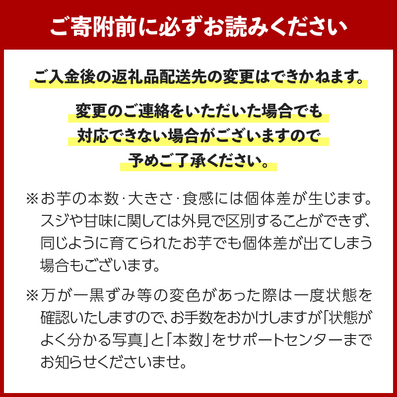 生芋のため、運搬及び輸送時の衝撃により、キズや破損、傷みが生じる場合があります。