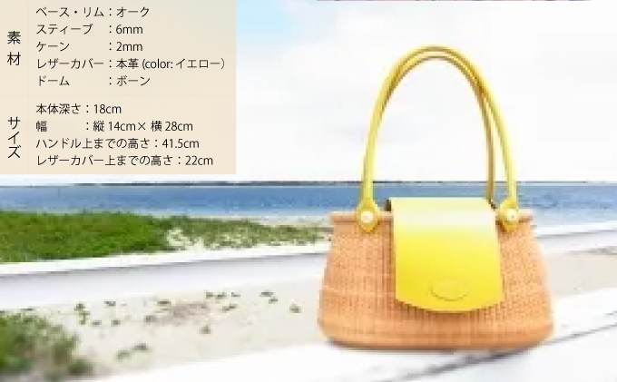 <素材>本体:藤皮・オーク素材 ハンドル・レザーカバー:本革(イエローカラー)
