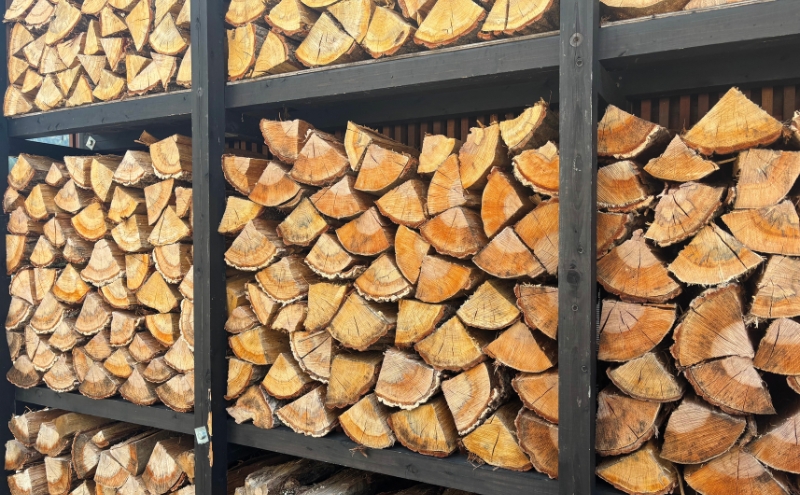 天日・ボイラーを併用していますので、乾燥状態は抜群です。高級なカシの薪をぜひお試し下さい。