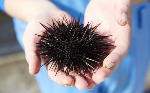 ウニ漁は5月下旬~8月上旬のみ解禁され、地元漁師は小さな船に乗りながら海中を箱メガネで除いて海底にいるウニを収穫します。