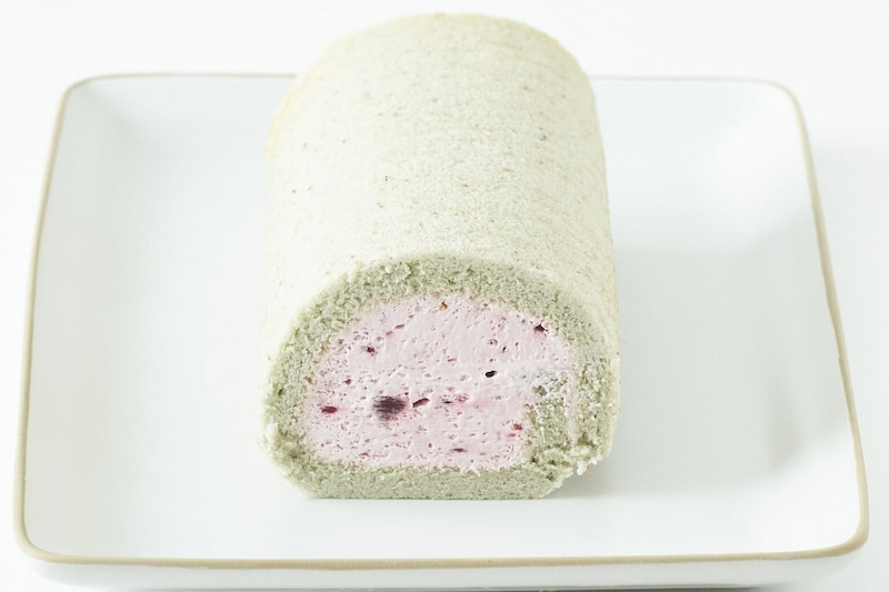 自家栽培のブラックベリーを使い、ほどよい酸味に仕上げた「白神ブラックベリーロール」。米粉スポンジにもクリームにも、果実をたっぷり使用しており、自然由来の色味が反映されています。濃厚でコクのある比内地鶏の卵、白神山地で発見された乳酸菌「白神ささら」も使用し、味わい深く仕上げています。小麦粉不使用ですので、特に健康を気遣う方にご好評です。解凍してのお召し上がりはもちろん、冷凍のままアイス感覚でもお楽しみいただけます。
