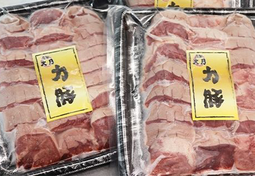 使用している力豚は一匹一匹手塩にかけて育てられ、出荷数が少ないため希少価値が高く、脂身が甘く食味の良さにも定評があるブランド豚です。