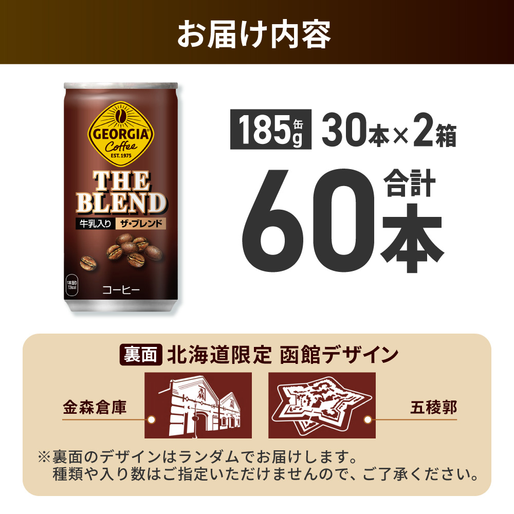 ■関連キーワード:ジョージア ザ・ブレンド 北海道限定デザイン 185g 缶 60本 缶コーヒー ブレンド やや深煎り 牛乳 コーヒー 飲料 coffee ソフトドリンク 北海道 札幌市