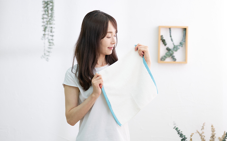 糸についた糊(のり)や油分などの不純物をきれいにすべて取り除き、漂白・水洗いをしていますので、おろしたてのタオルがそのまま使えます。