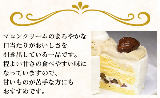 女性パテシエールならではの、お花型のクッキ−がかわいいデザインのモンブランです。