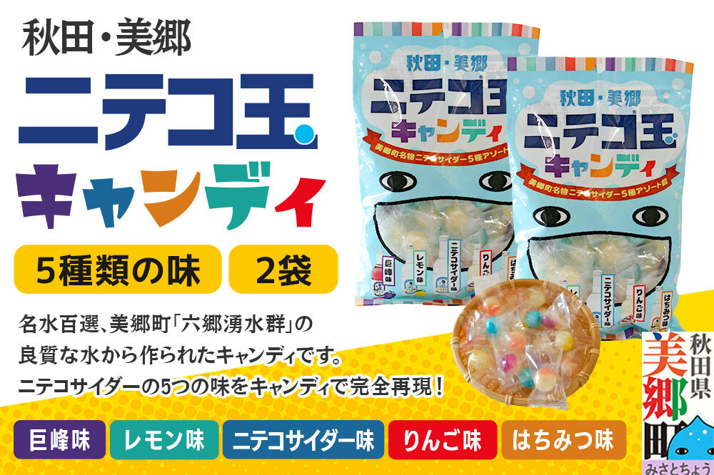 ![ニテコ玉キャンディ 5種アソート2袋セット あきた美郷づくり [飴 アメ あめ 秋田 美郷町 巨峰味 レモン味 ニテコサイダー味 りんご味 はちみつ味] 秋田県美郷町](https://www.furusato.aeon.co.jp/g_img/054348/file_406dfad4b3c08f68be399a34b77ab415.webp)