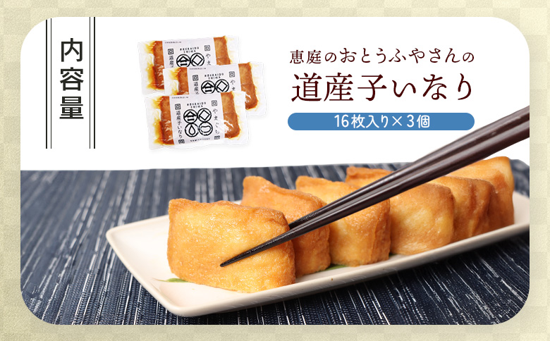 おとうふやさん 道産子いなり 16枚入り 3個 計48枚 オンライン 申請 ふるさと納税 北海道 恵庭 大豆 大豆製品 お稲荷さん おいなりさん きつねうどん 蕎麦 トッピング 煮物 油揚げ 昼食 夕食 ご飯 手土産 恵庭市