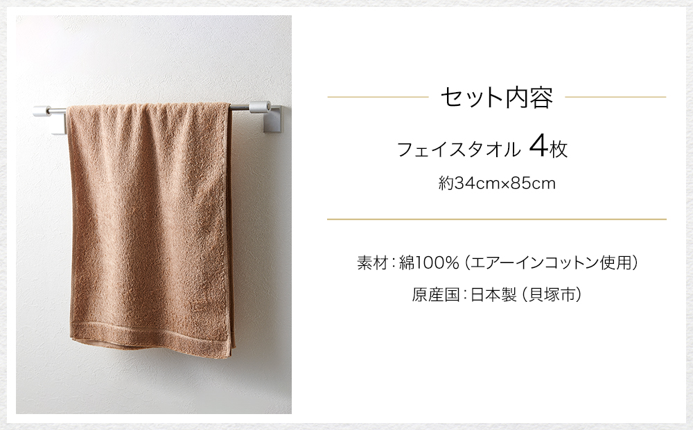 #国産タオル #フェイスタオル #タオルセット #泉州タオル #おとなカラー #ラテカラー #高級 #ホテル仕様 #速乾 #綿100% #4枚組 #泉州 #国産 #日本製