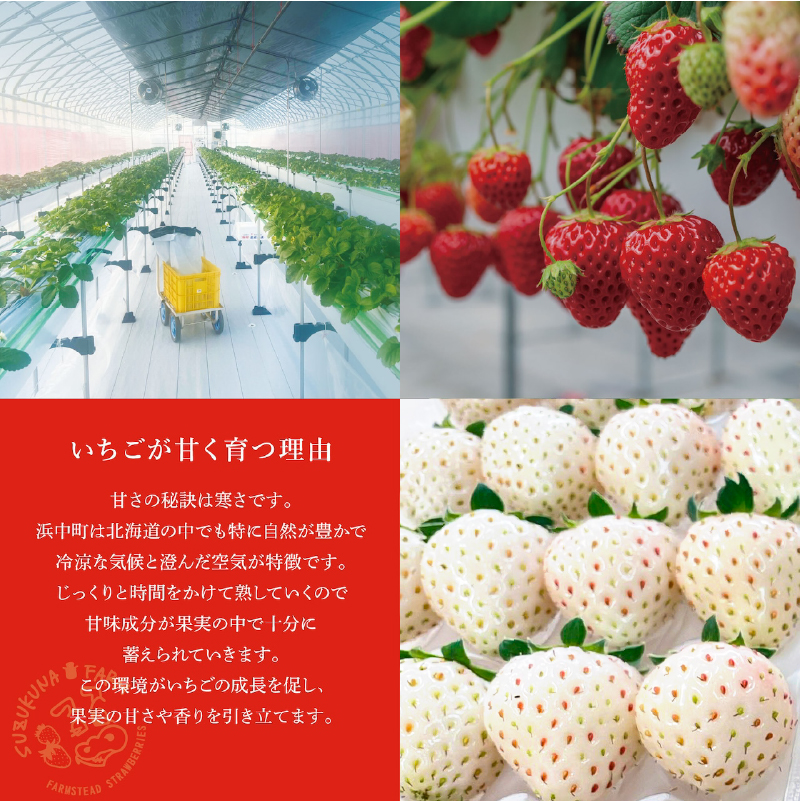 北海道浜中町から、糖度にこだわったBELL RICHの『赤白いちごの贅沢食べ比べセット』を期間・数量限定ではございますが、特別に返礼品としてご用意いたしました。