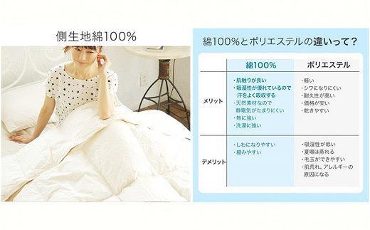 また中材のダウン率はあえて70%に調整し、長い季節の間快適にご使用いただけるように仕上げ、