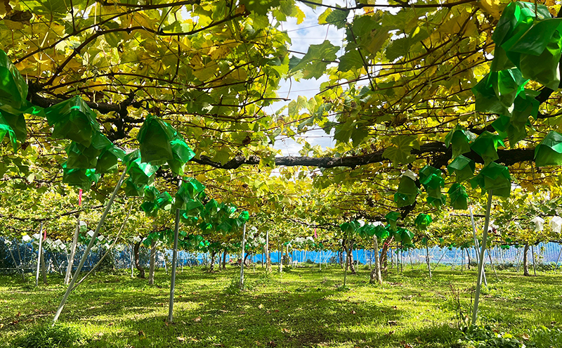長野県果樹試験場や果樹研究会で研鑽を積んだ生産者が、一房一房手作業で色づきや熟度を確かめながら丁寧に育てたぶどうです。