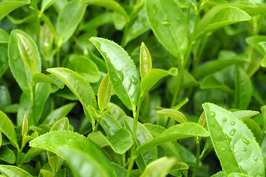 温暖な気候と風土に恵まれて、柔らかい緑のうねりを描く種子島の茶園。
