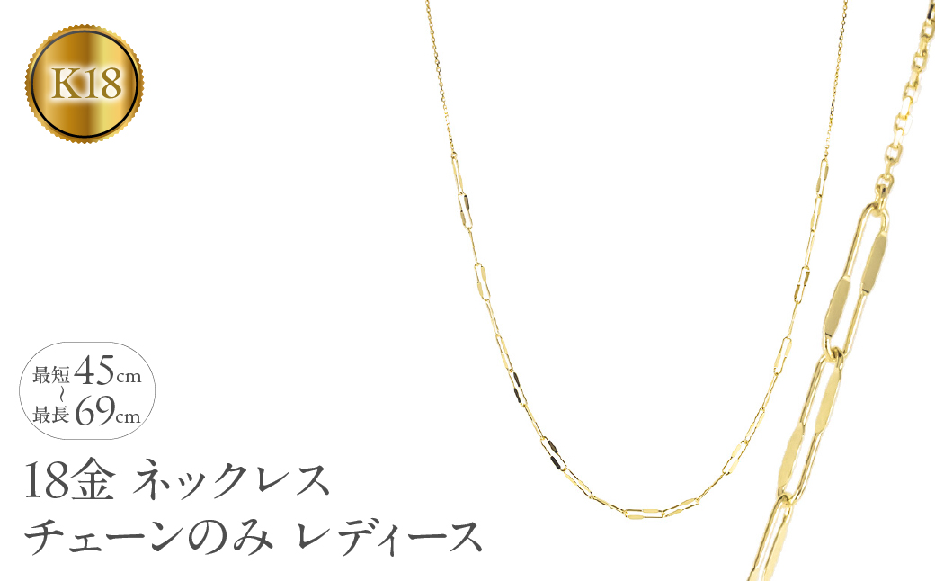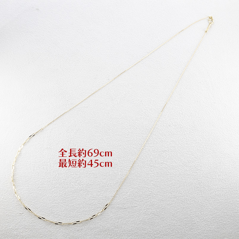 最短45cm~最長69cmまで自在に調整できる便利なネックレス