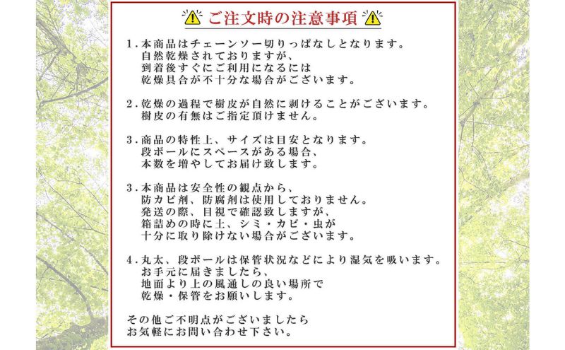 ※切りっぱなし丸太となります。切断面が若干斜めの場合もございます。