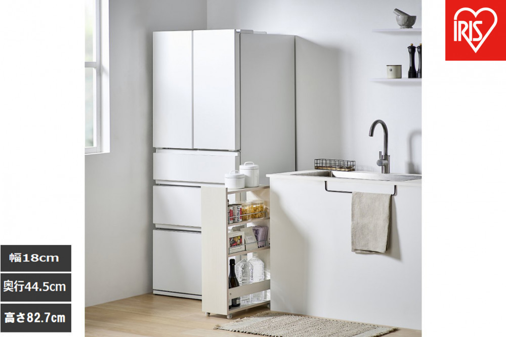 “幅18cm”以上の隙間があれば簡単に収納スペースが作れる、隙間収納ラック[ロータイプ]です。