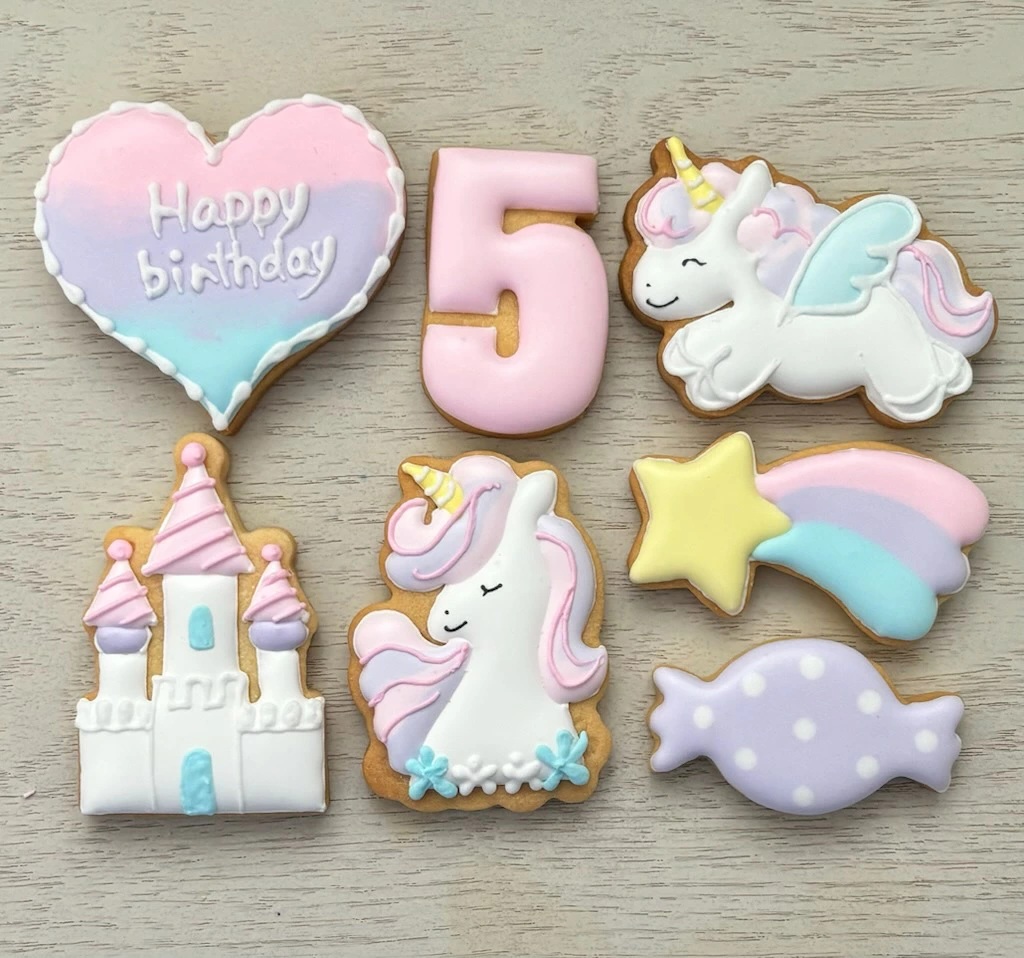 バースデープレート、数字、お城、キャンディ、流れ星各1枚、ユニコーン2種 計7枚