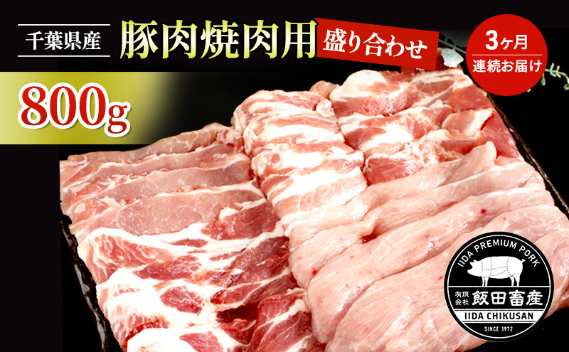 千葉県産 豚肉 焼肉用 盛り合わせ 800g入 (ロース200g、肩ロース200g、バラ200g、モモ200g) トレー入り真空パック(冷凍) 3か月連続でお届け