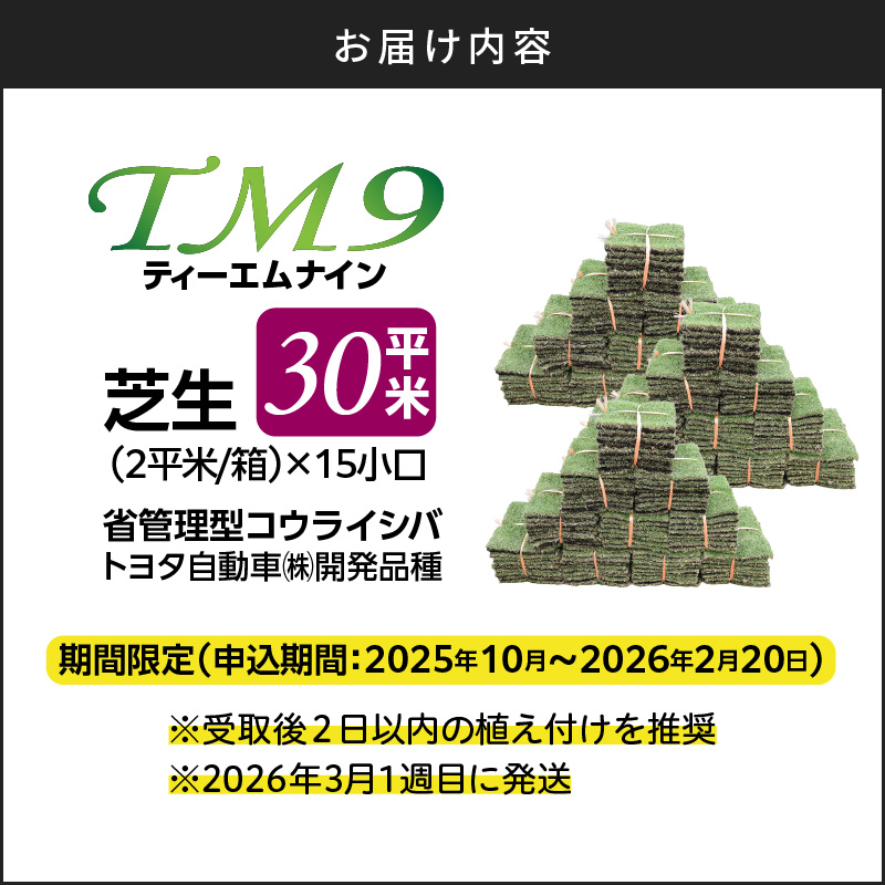TM9(ティーエムナイン)省管理型コウライシバ 芝生30平米