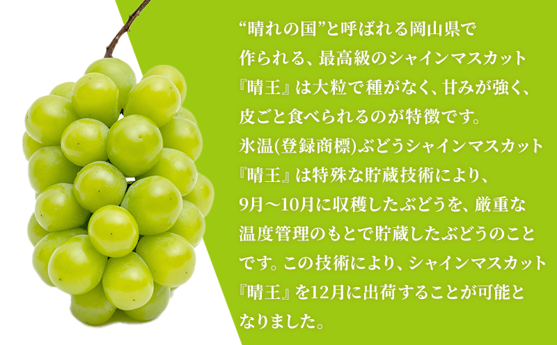 氷温(登録商標)ぶどうシャインマスカット『晴王』1房(650g以上)…12月発送